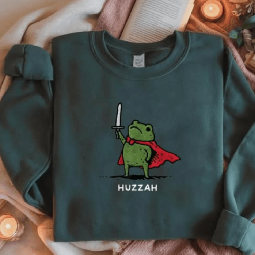 This sweatshirt caught me off guard. I loved it instantly: a frog with a sword, wearing a cape, shouting Huzzah! But what undid me was what came after. Memory. I had forgotten that Jess loved the word Huzzah. In the…